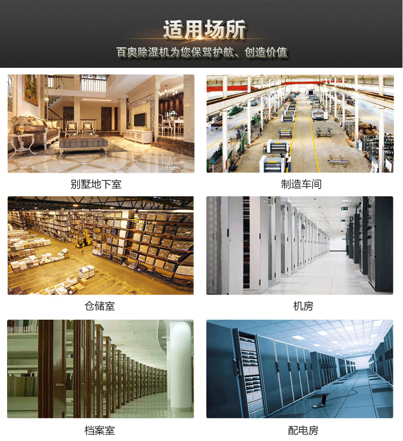 百奧工業除濕機廣泛應用于辦公室、檔案、資料、圖書館、電腦房、精密儀器室、醫院及貴重物品倉庫,化纖、制藥、軍工、玻璃、食品、電子、冶金、印刷、倉庫、地下室、檔案室、電力、電信、卷煙、醫藥、印刷、茶葉、皮革、紡織等對濕度有要求的場所。